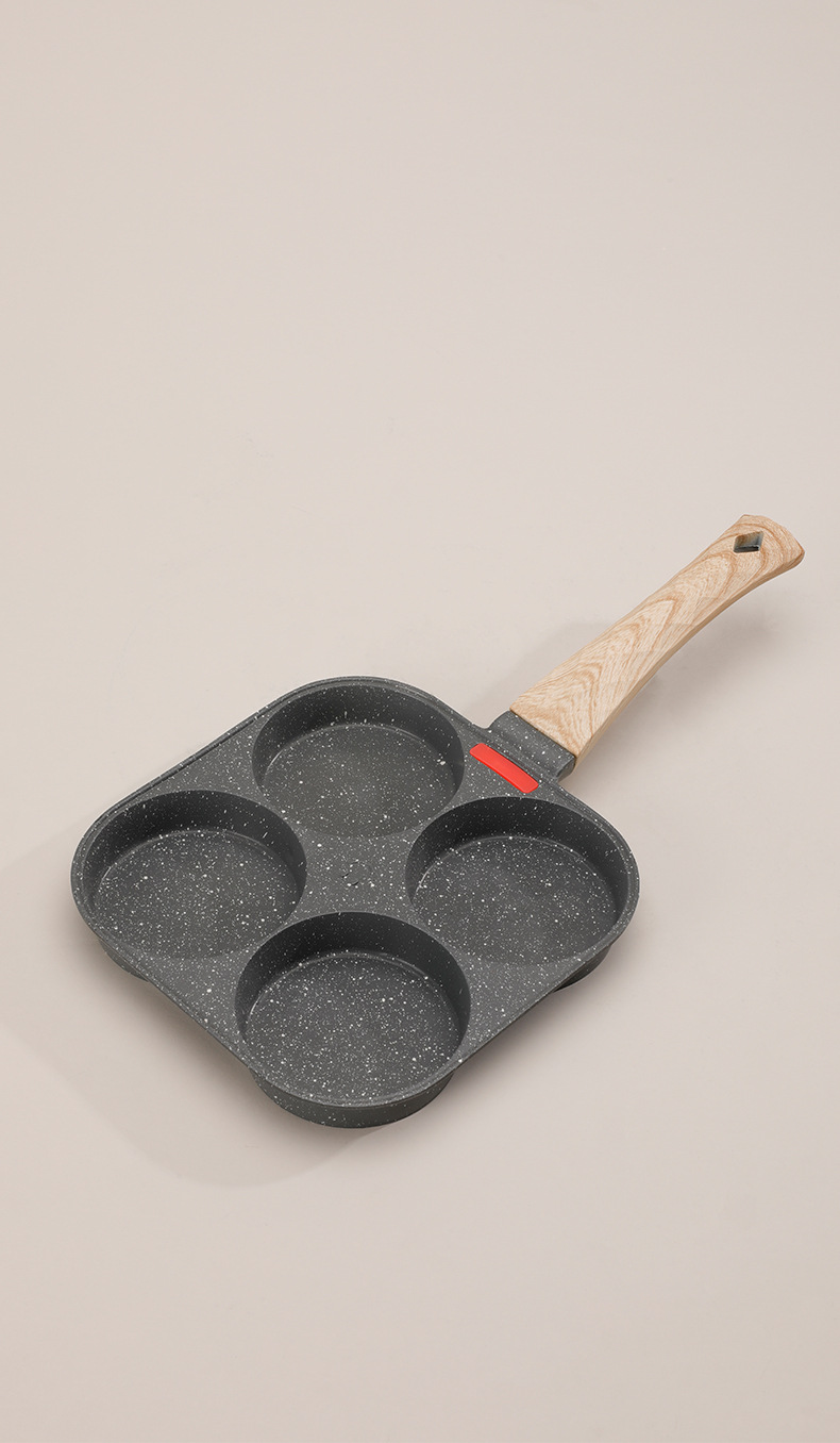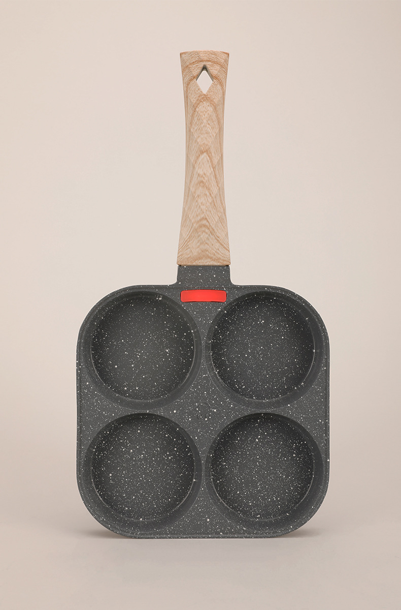 Upgrade breakfast with this aluminum non-stick 4-hole egg frying pan! Featuring a durable stone-coated surface, it ensures effortless food release and easy cleanup.
