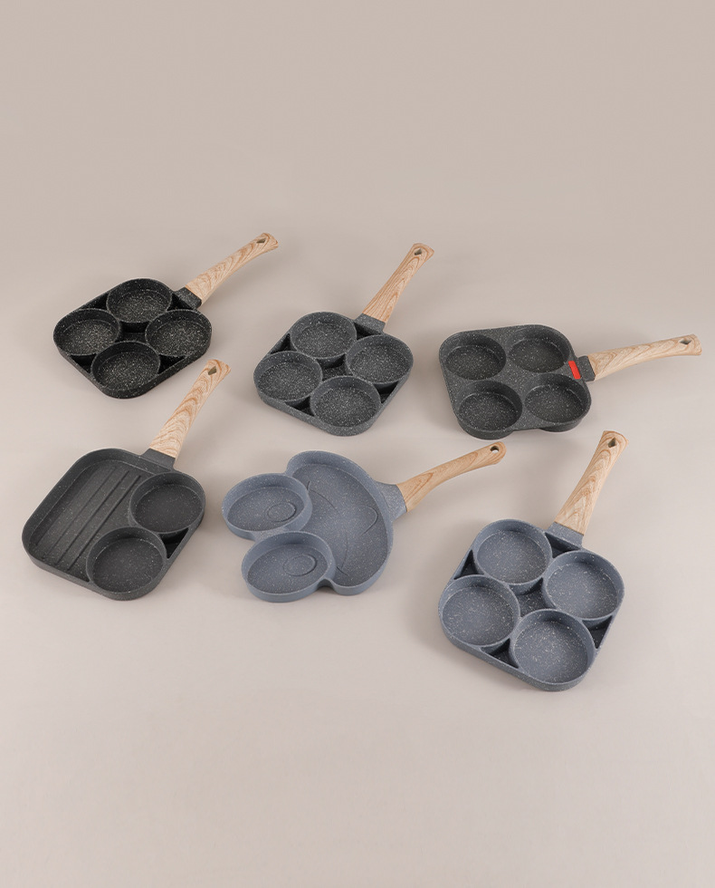 Cross-border Egg Frying Pan Aluminum Maifan Stone Non-stick Four-hole Egg Frying Pan Household Flat Bottom Steak Omelette Hamburger Breakfast Pan